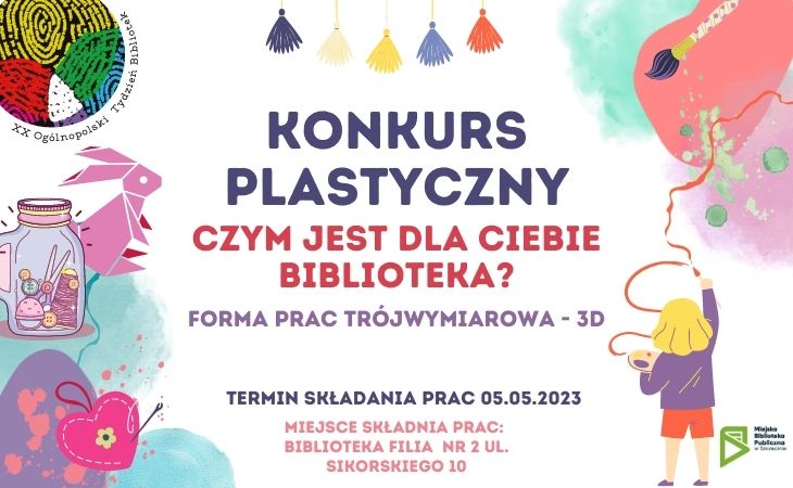 Korzystając z okazji, że zbliża się Tydzień Bibliotek, czyli święto wszystkich książkowych wypożyczalni w Polsce, w imieniu Pani Justyny z filii nr 2 (ul. Sikorskiego 10) zapraszamy do udziału w konkursie plastycznym dzieci