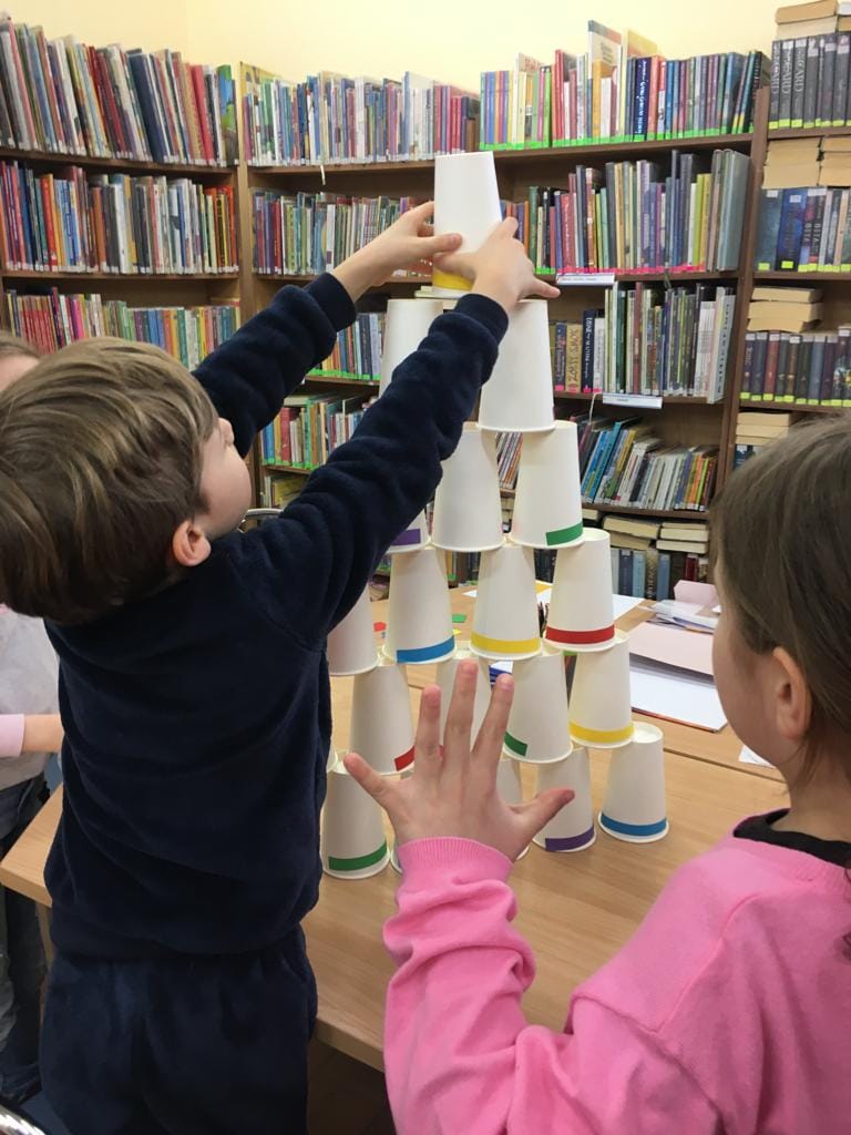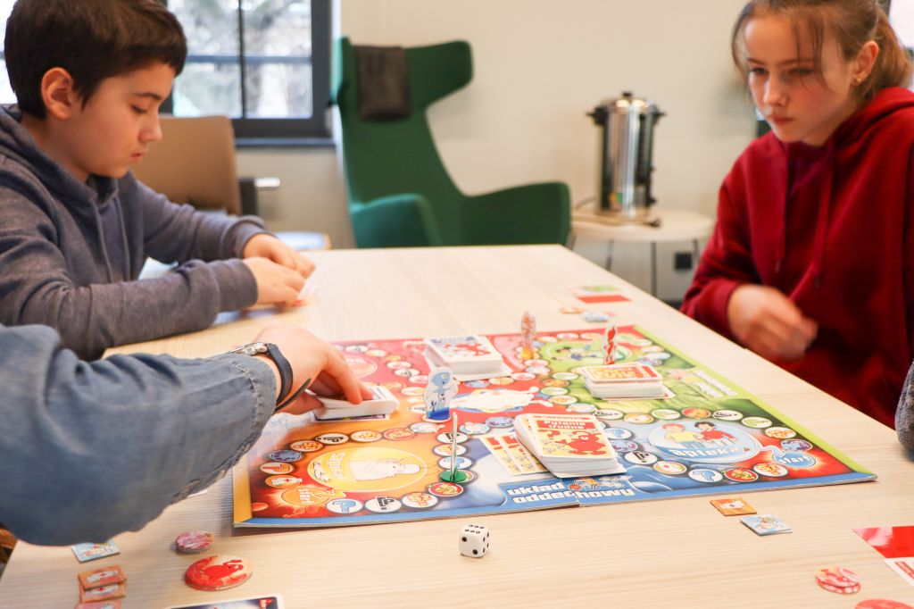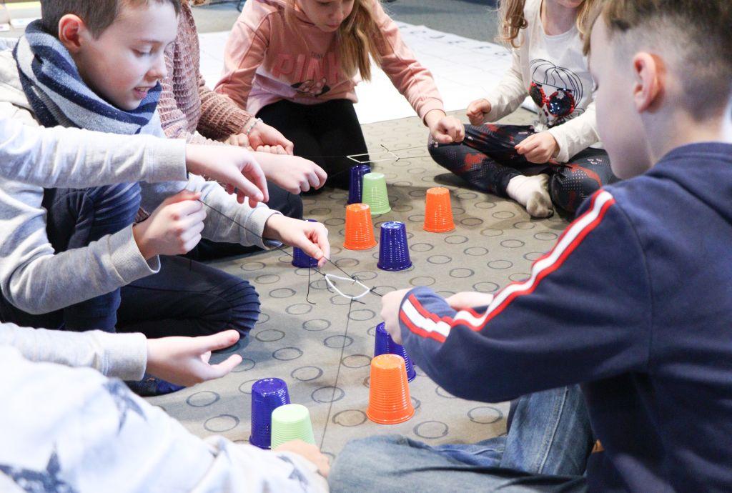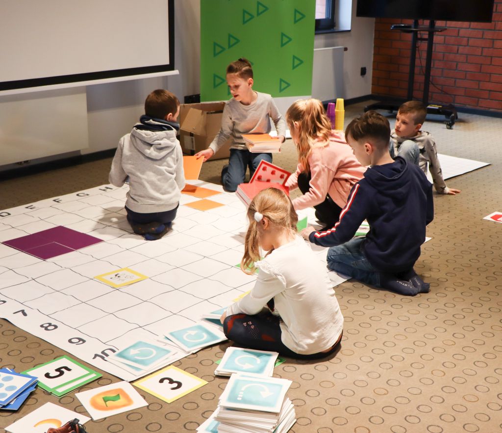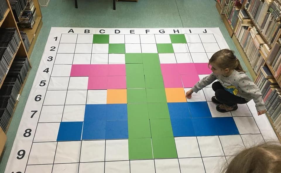 Dzieci uczestniczyły także w burzliwych rozgrywkach gier planszowych, takich jak „Reef”, „Dooble”, „Zgadnij kto to” czy „Pełny kurnik” oraz w Kodowaniu na dywanie, gdzie z pomocą współrzędnych tworzyły obrazki i ćwiczyły logiczne myślenie i symetrię.