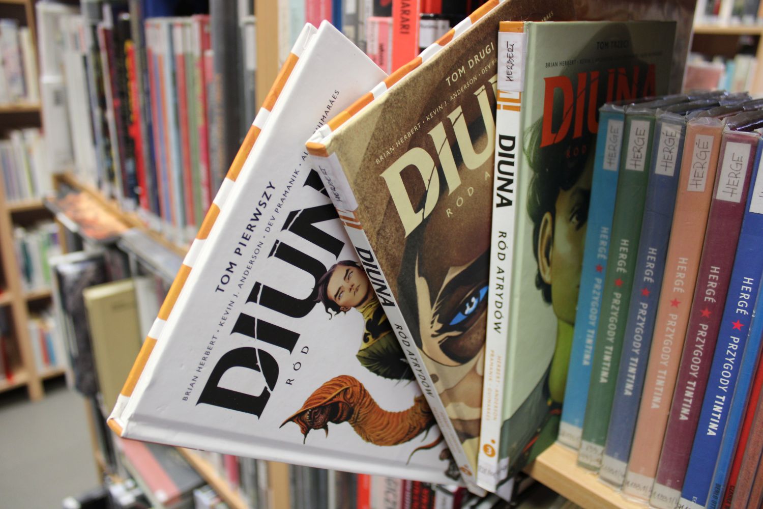 Jako jedyni w sieci bibliotek miejskich posiadamy obszerny zbiór komiksów dla dorosłych o bardzo różnorodnej tematyce. Wciąż powiększamy zbiór literatury w języku angielskim i niemieckim.