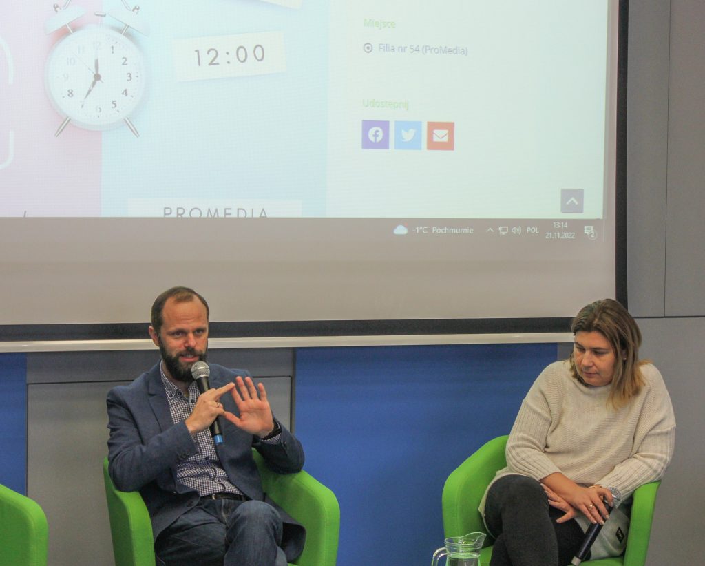 W poniedziałek oraz środę odbyły się dwa bardzo ciekawe i cenne wydarzenia. Mieliśmy okazję wysłuchać prelekcji protetyczki słuchu Agnieszki Buczkowskiej, rozmawialiśmy o ofercie kulturalnej biblioteki, o specjalistycznej pomocy dla osób z dysfunkcją wzroku. Odbyła się projekcja filmu „Sound of metal”. Z Karolem Pabichem oprowadziliśmy Was po wystawie sensorycznej, a całość uświetnił występ artystyczny Danuty Łuszczek z grupy wokalno teatralnej Espero!