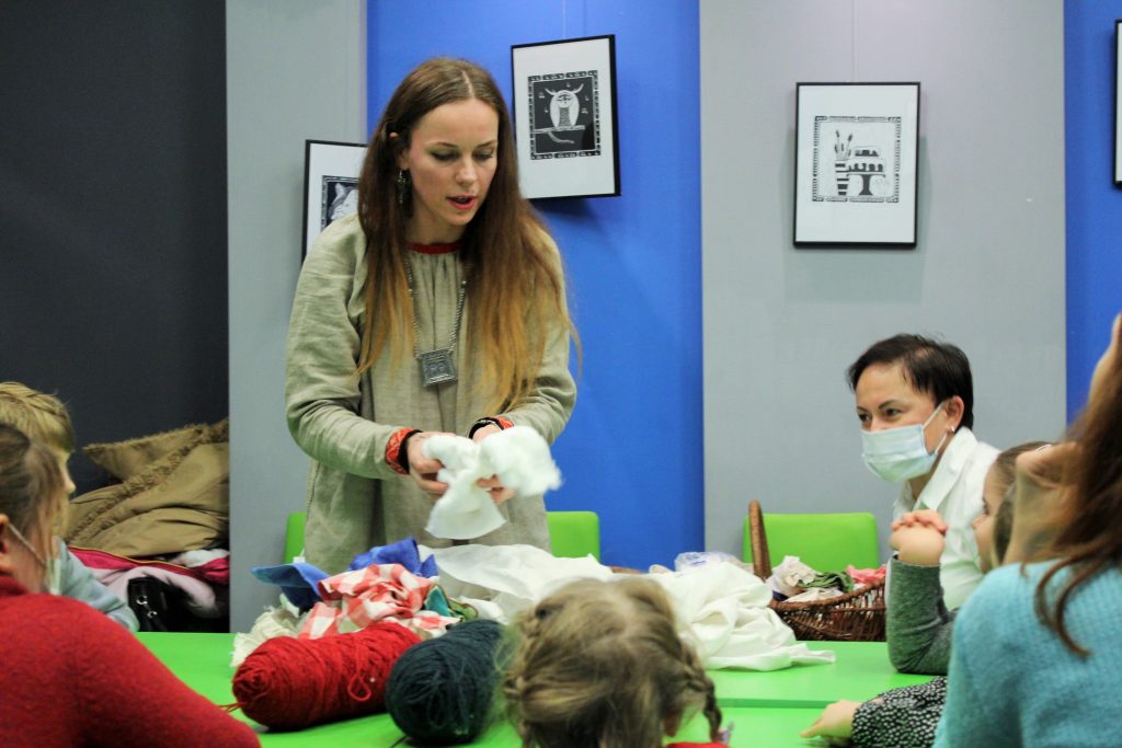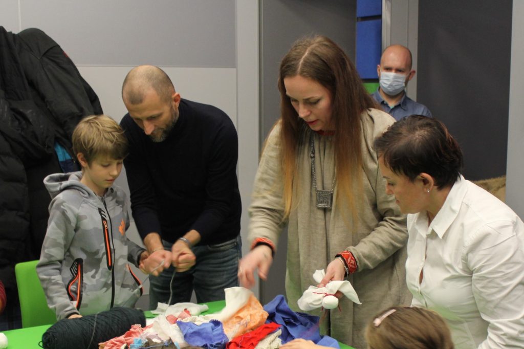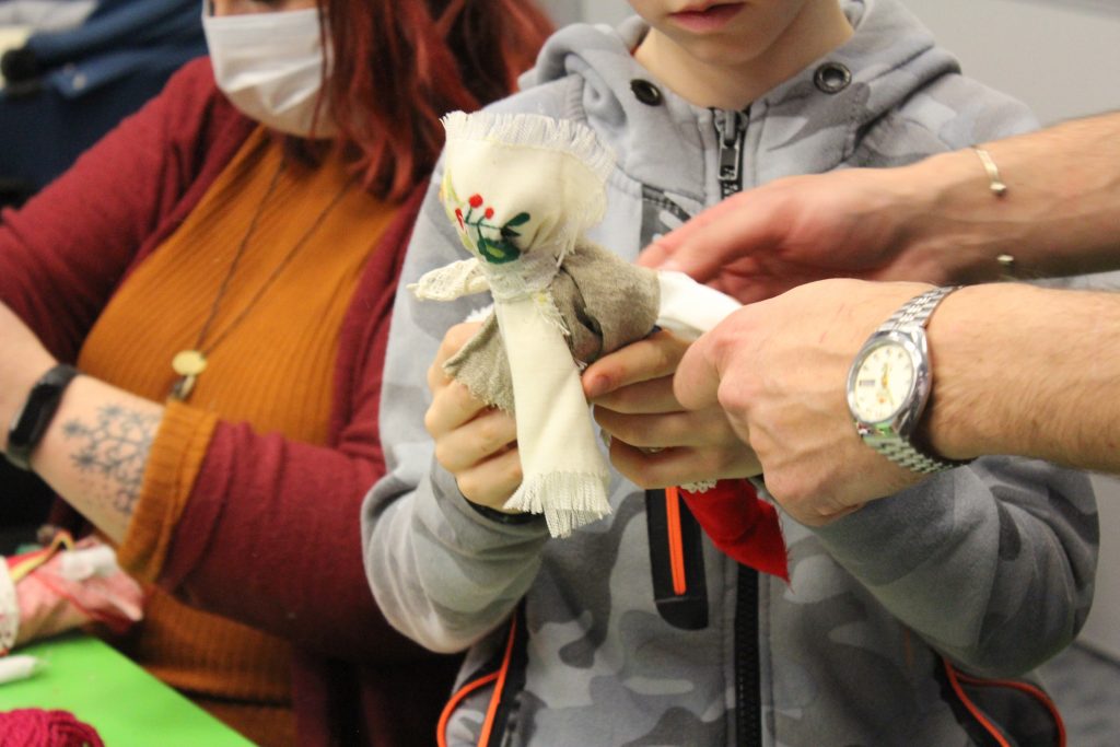 Dzieci miały okazję na warsztatach zrobić słowiańskie motanki, czyli lalki zrobione z gałganków, przy czym ważna jest, aby przy „motaniu” nie używać żadnych ostrych narzędzi, nożyczek czy igły.