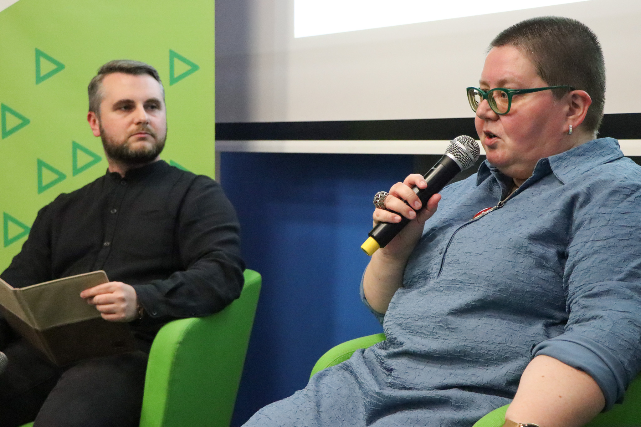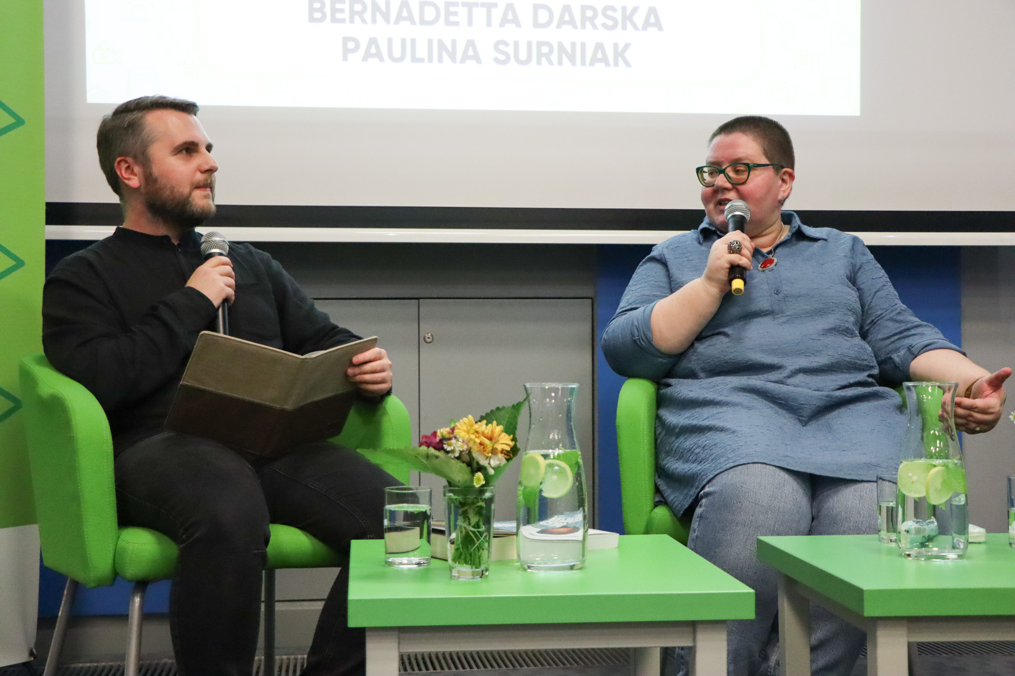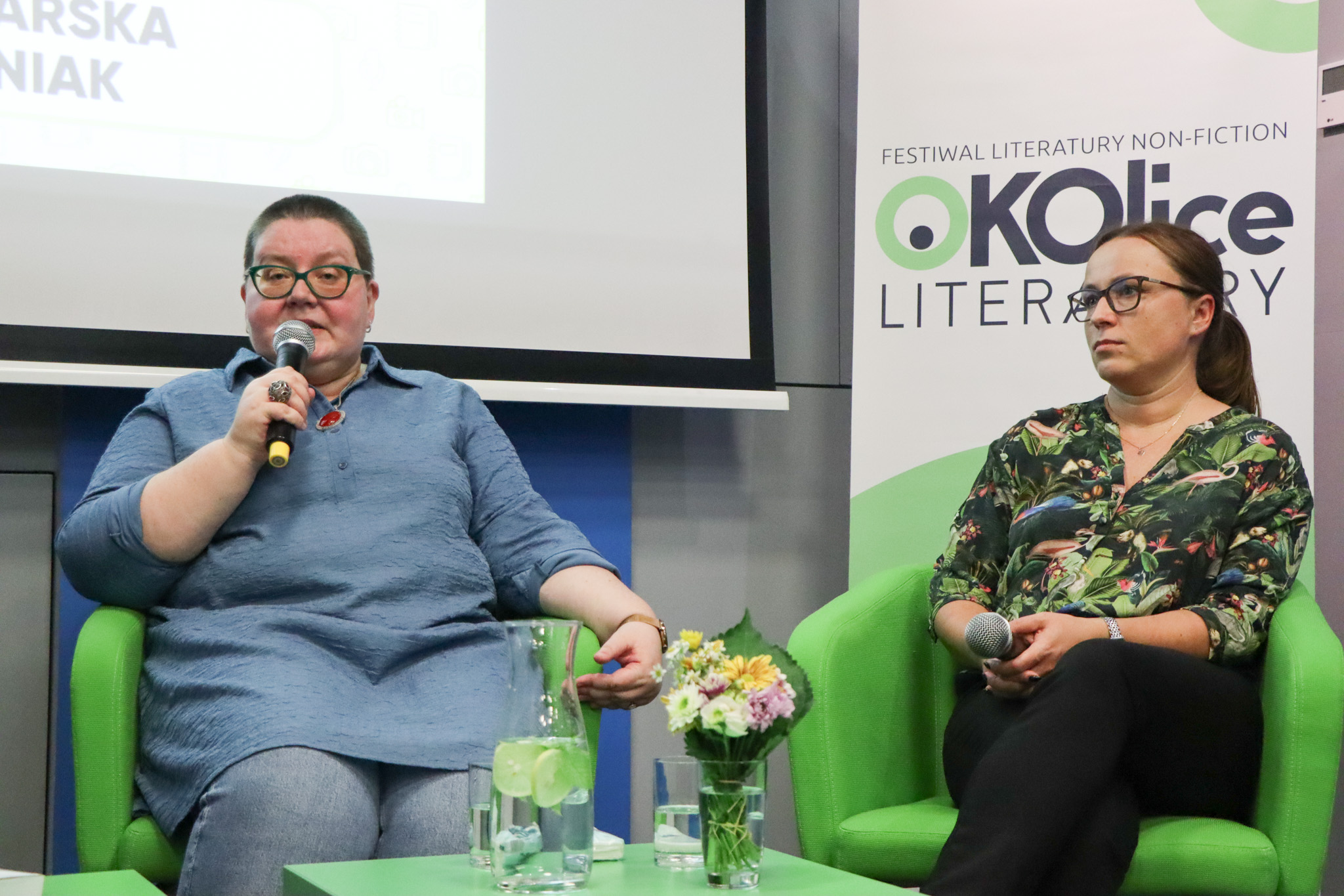 Bernadetta Darska oraz Paulina Surniak podczas panelu dyskutowały o kondycji reportażu po 2010 r. Spotkanie moderował Gabriel Augustyn.