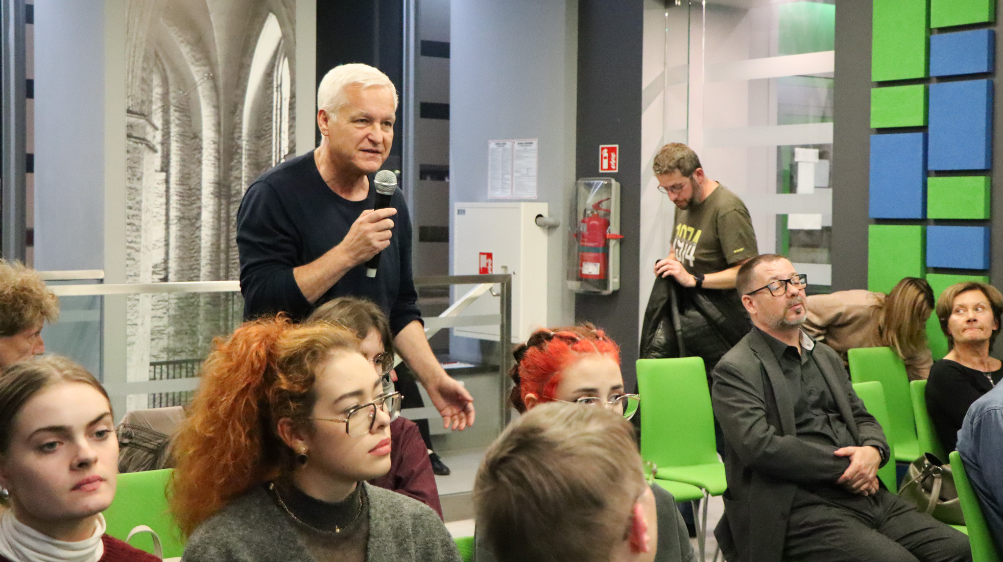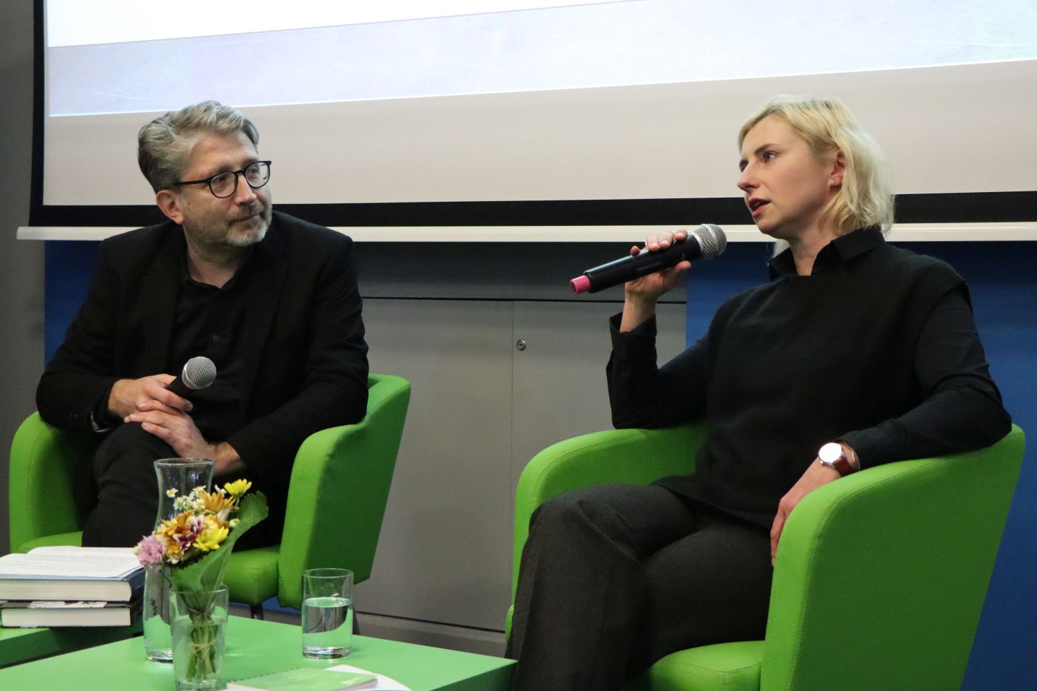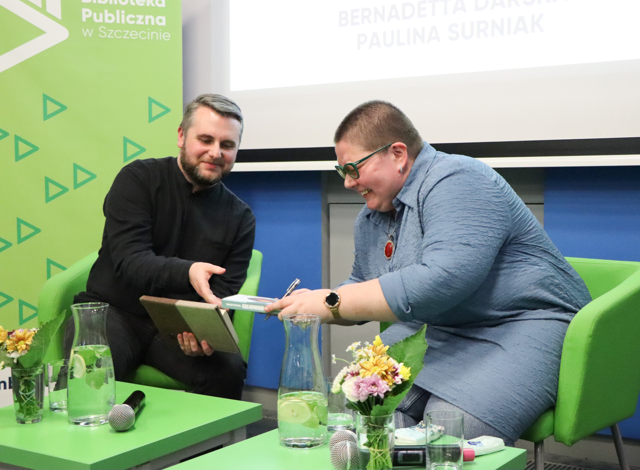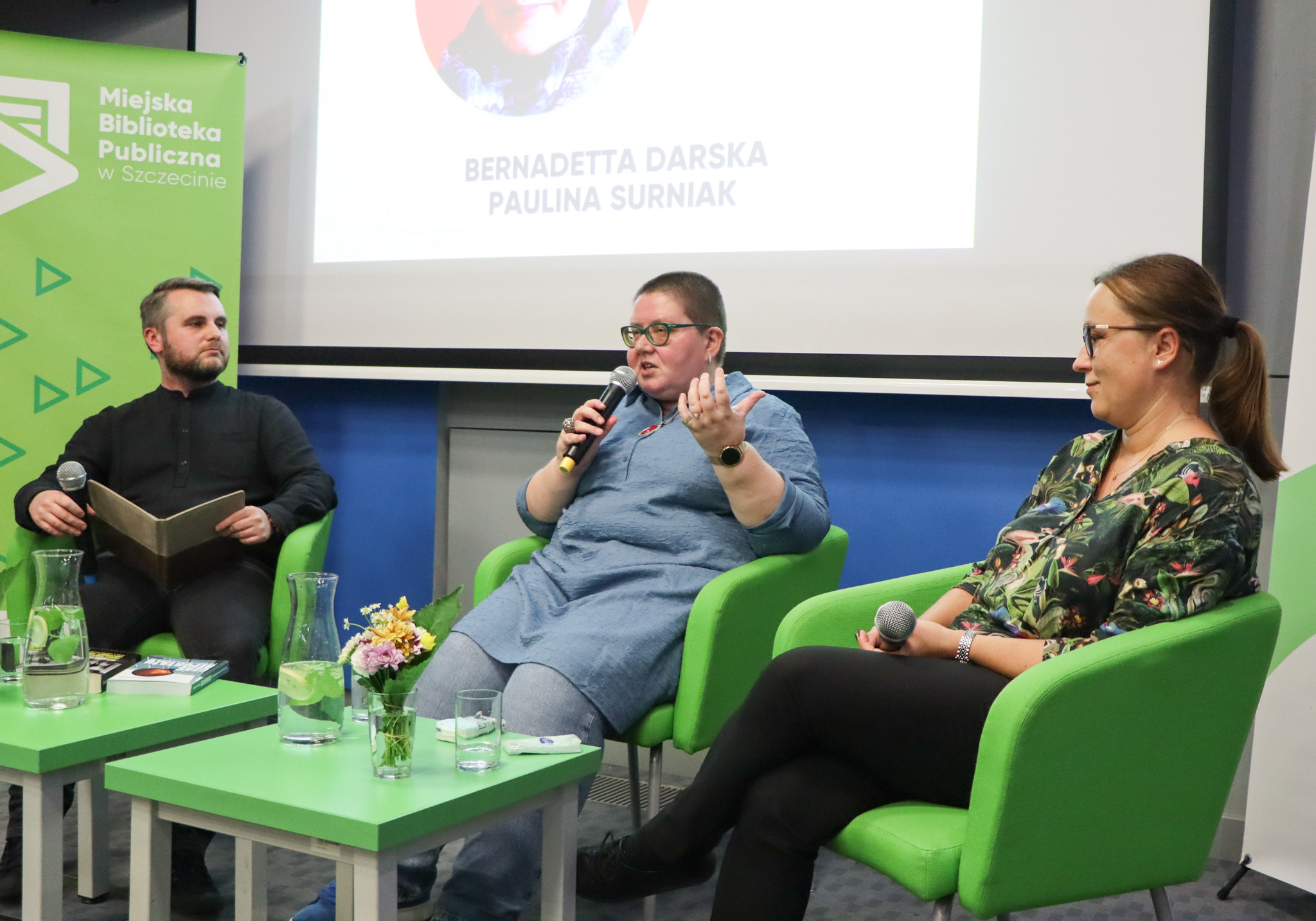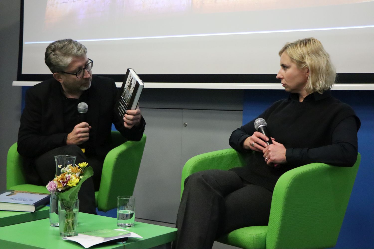 O temat łączenia reportażu literackiego oraz badawczej pracy naukowej dr. Barbarę Patlewicz pytał dr hab. prof. US Eryk Krasucki (oboje reprezentujący Instytut Historyczny Uniwersytetu Szczecińskiego).