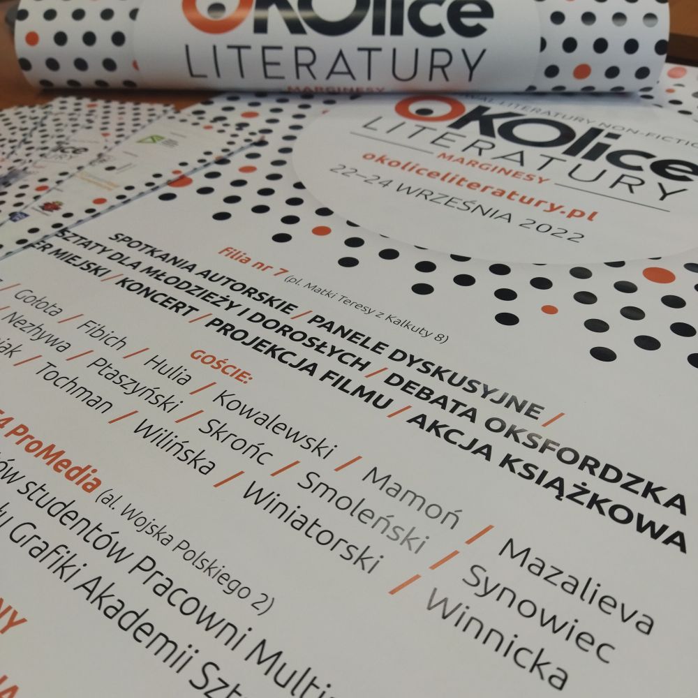 Zapraszamy na 4. edycję festiwalu literatury non-fiction OKOlice Literatury, który potrwa od 22 do 24 września 2022 roku. Tym razem hasłem przewodnim wydarzenia będą “Marginesy” w wielu aspektach życia społecznego.
