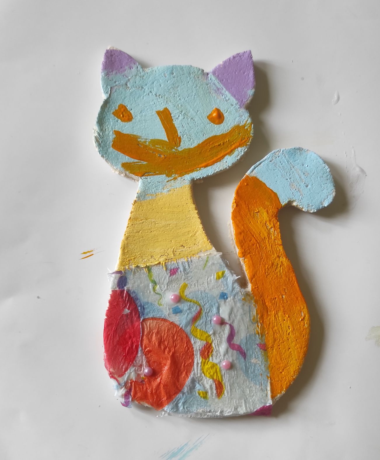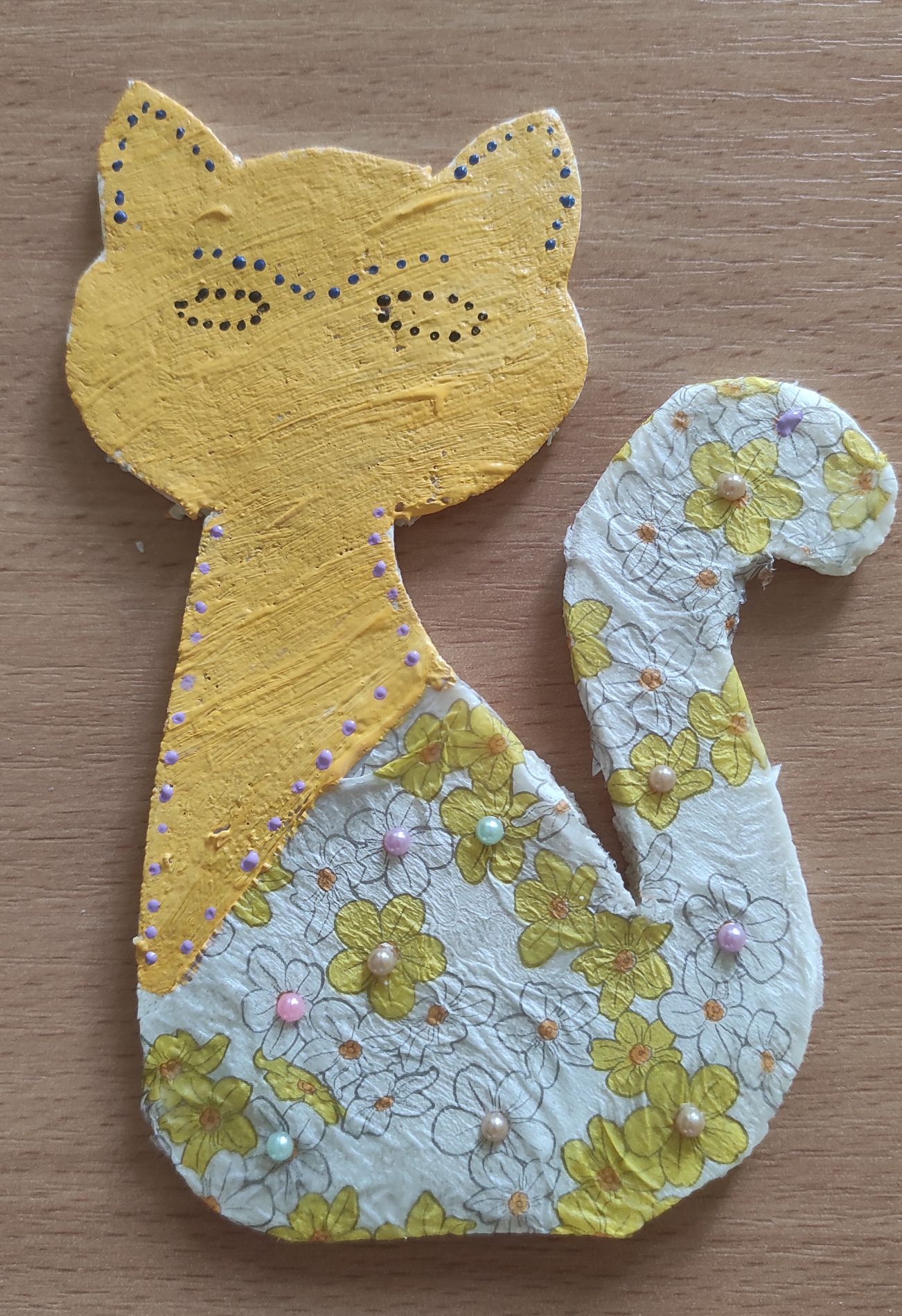 Na ostatnim spotkaniu uczestnicy dostali już wypieczone płaskie modele kotka oraz motylka, które zostały pomalowane i przyozdobione w technice decoupage. Wszystkie prace zostały zabrane do domu.
