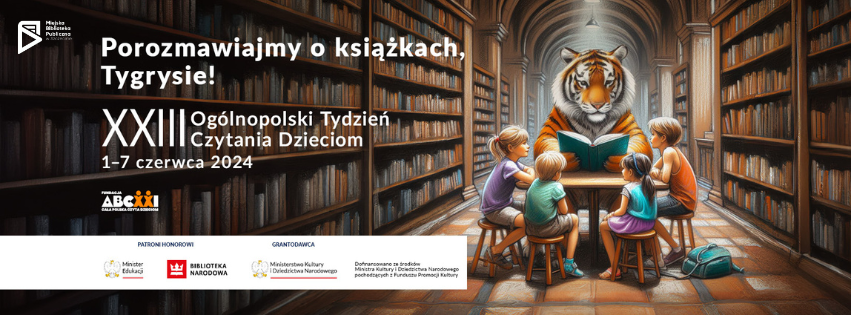 „Porozmawiajmy o książkach, Tygrysie” to hasło XXIII Ogólnopolskiego Tygodnia Czytania Dzieciom, który odbędzie się w dniach 1–7 czerwca 2024 r. I my po raz kolejny bierzemy udział w akcji.