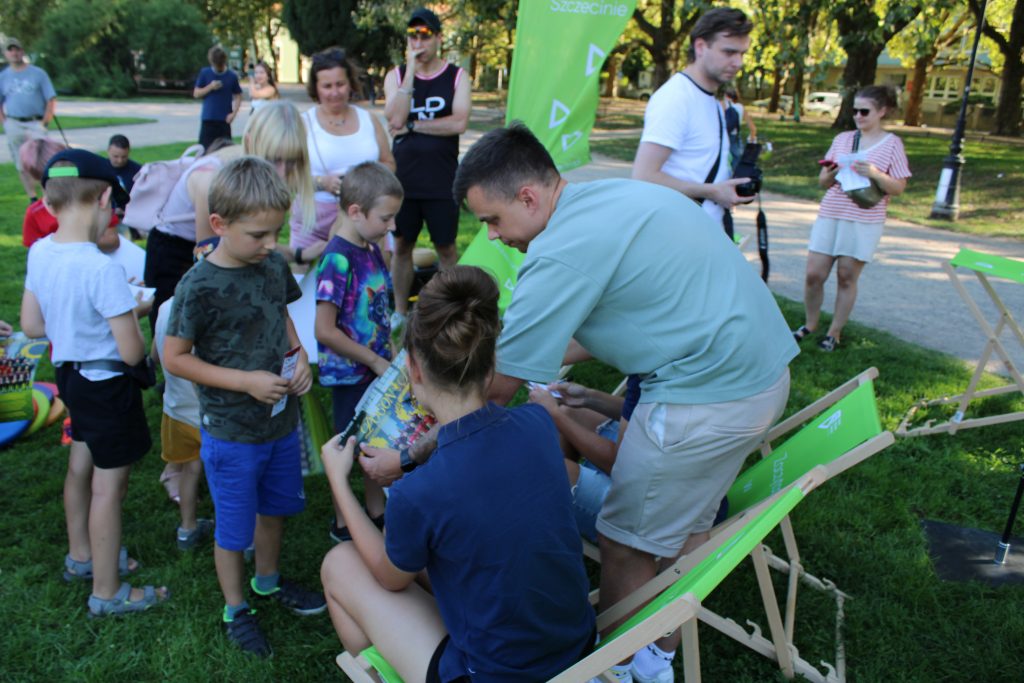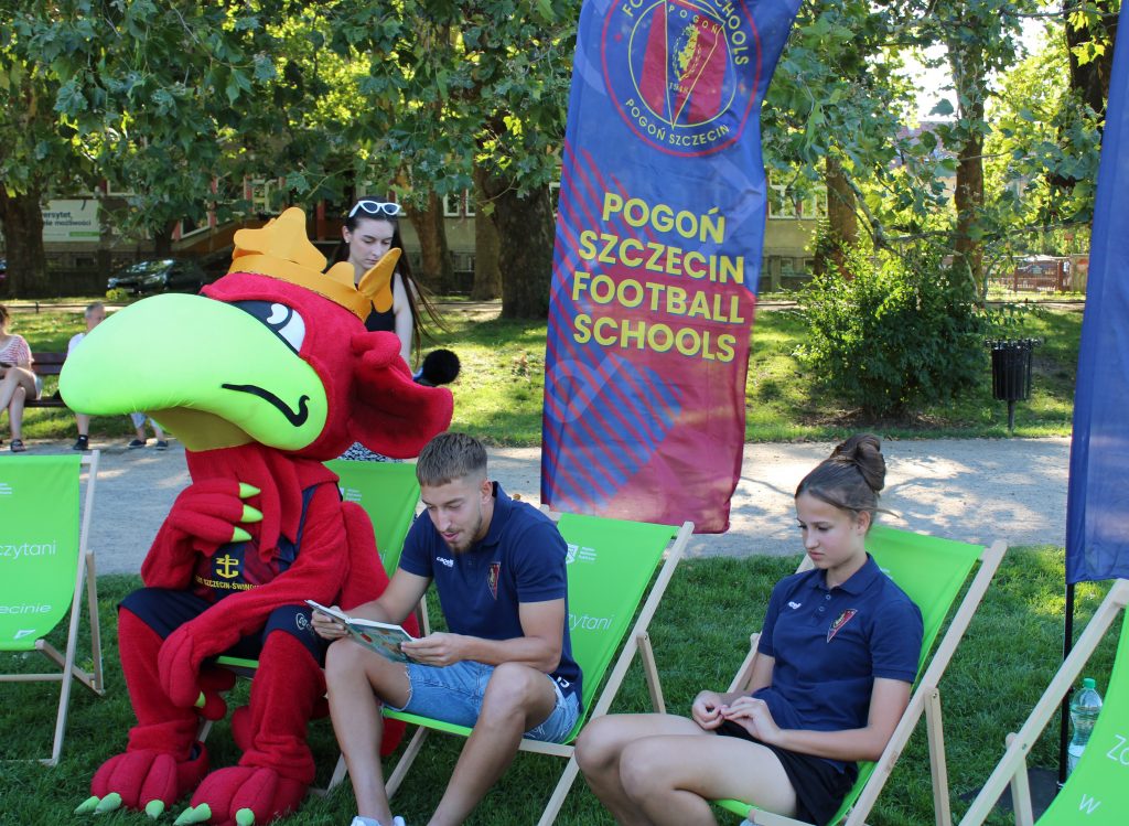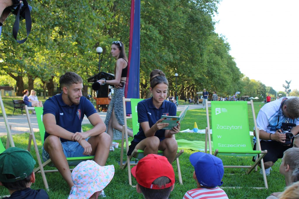 W sierpniu rozpoczęliśmy od „treningu” czyli spotkania z piłkarzami Pogoni, którzy przeczytali fragmenty książek, a następnie poprowadzili trening piłkarski dla najmłodszych fanów książek i sportu.