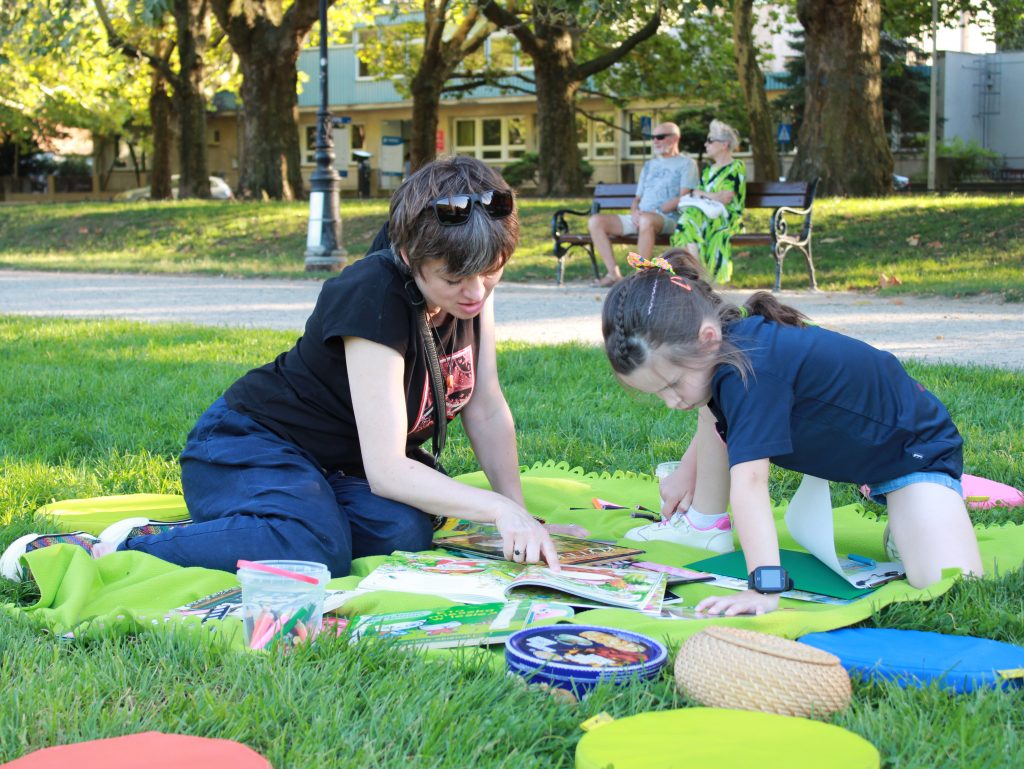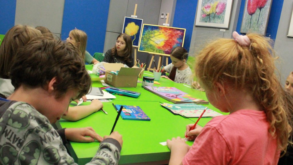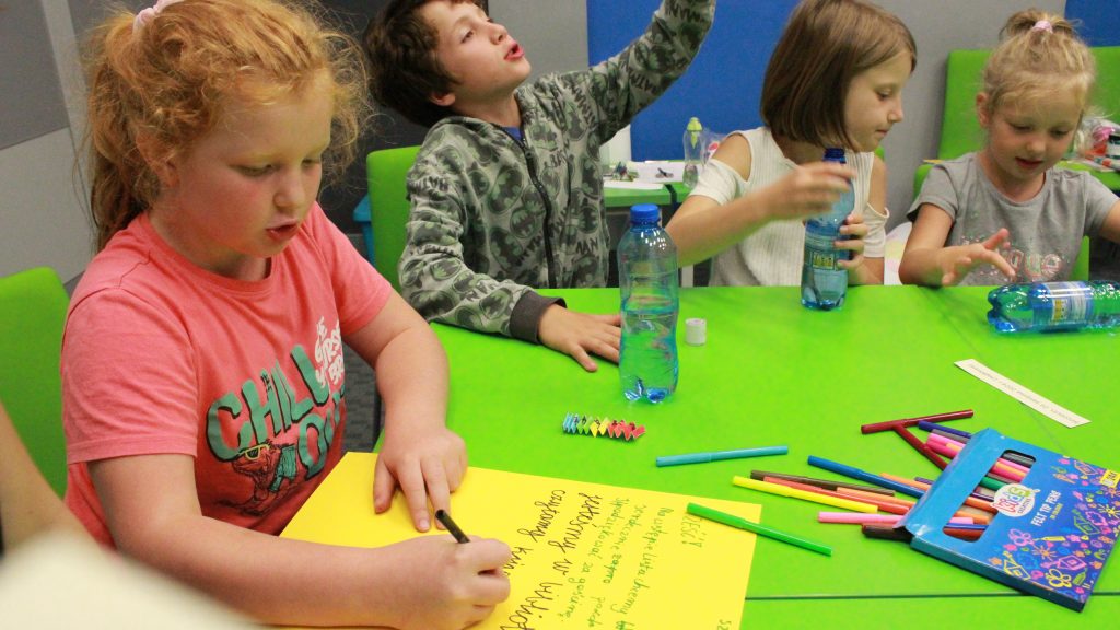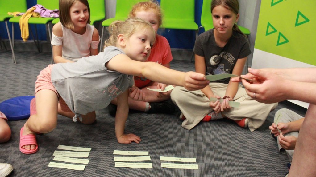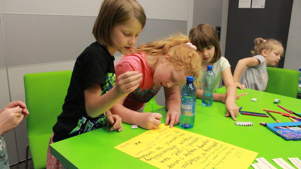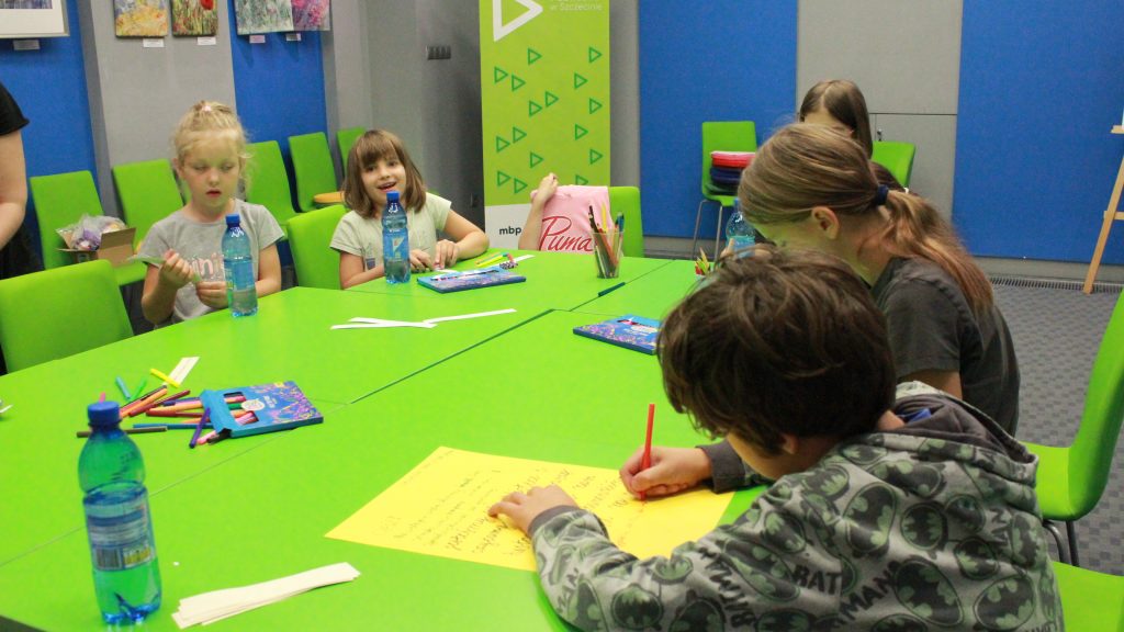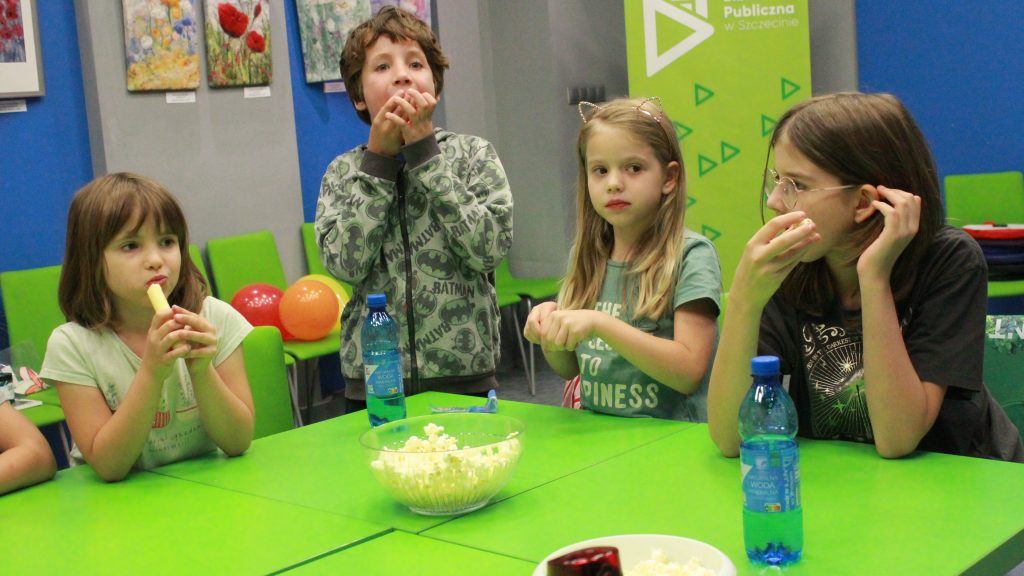 „Pierwszą połową” były warsztaty literacko-plastyczne podczas, których dzieci złożyły słowne puzzle czy posłuchały fragmentów książki „Urodziny” Joanny Jagiełło. Nie zabrakło dobrej zabawy, jak również przekąsek. ![]()
