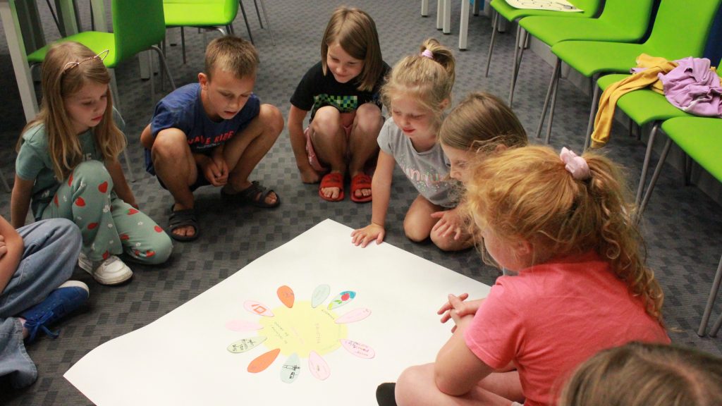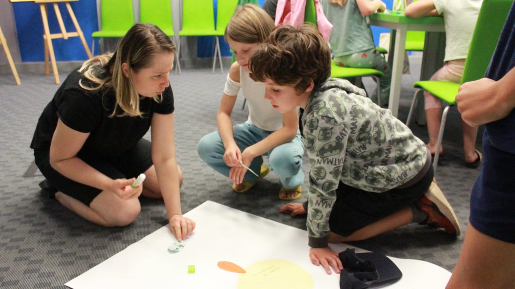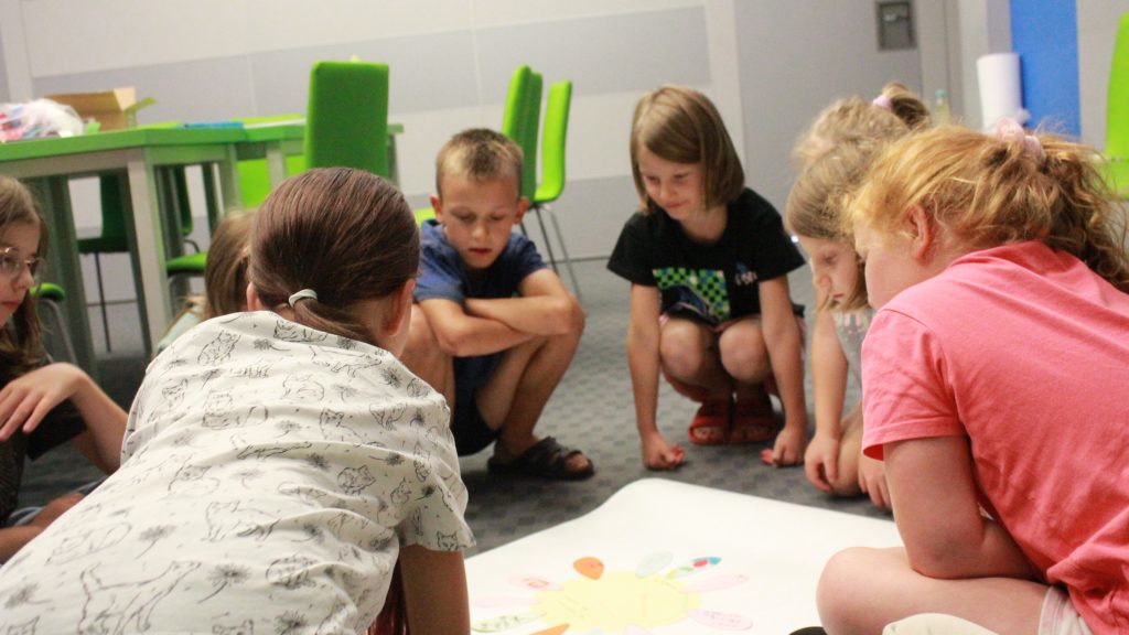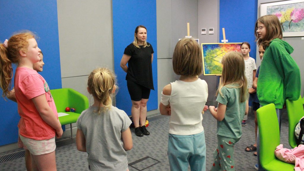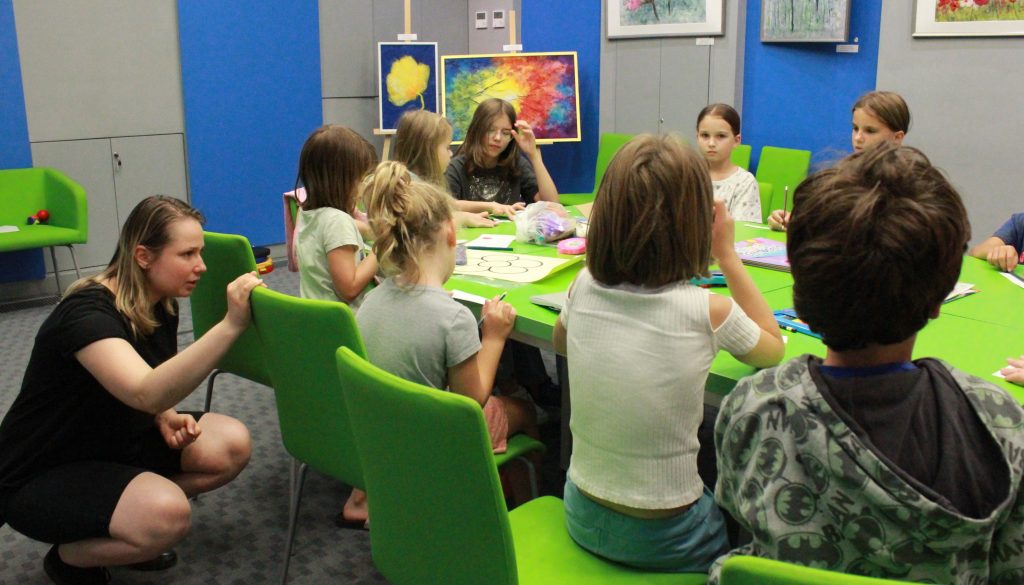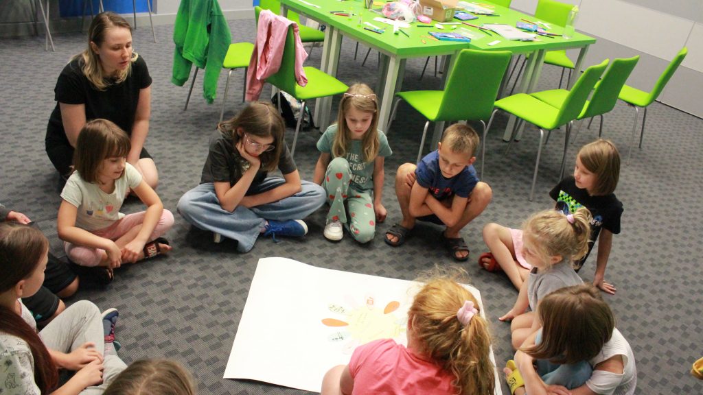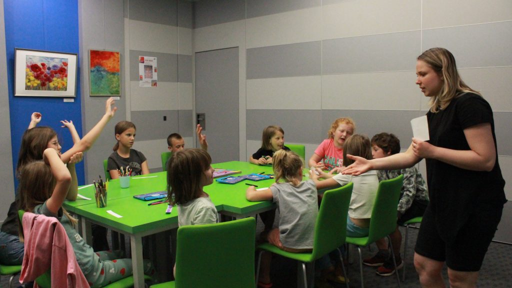 „Pierwszą połową” były warsztaty literacko-plastyczne podczas, których dzieci złożyły słowne puzzle czy posłuchały fragmentów książki „Urodziny” Joanny Jagiełło. Nie zabrakło dobrej zabawy, jak również przekąsek. ![]()