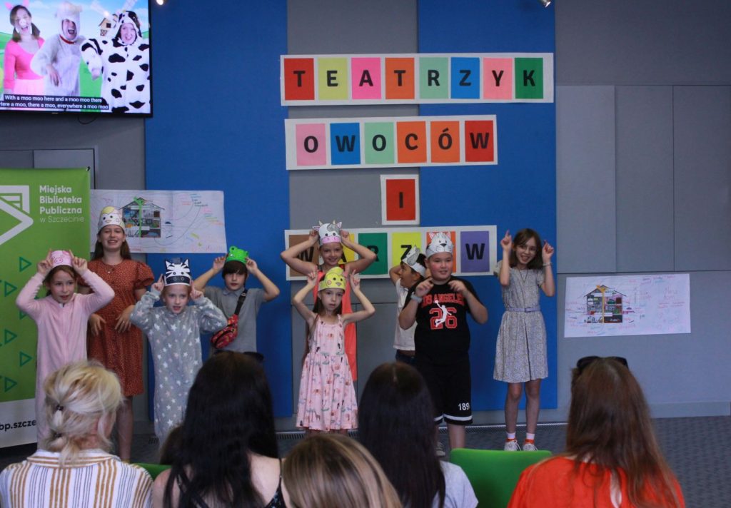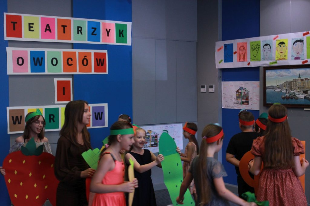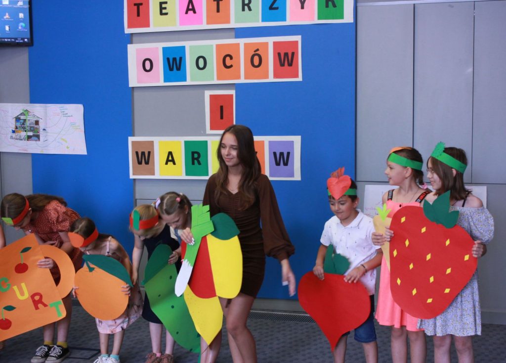 Jako Teatrzyk Warzyw i Owoców recytowały po polsku wierszyk na temat zalet zdrowego jedzenia roślin. Wszyscy mali aktorzy i aktorki przebrali się w owocowo-warzywne stroje wykonane samodzielnie. Zaśpiewali także po angielsku i zatańczyli do znanej rymowanej piosenki “Old MacDonald had a farm”.