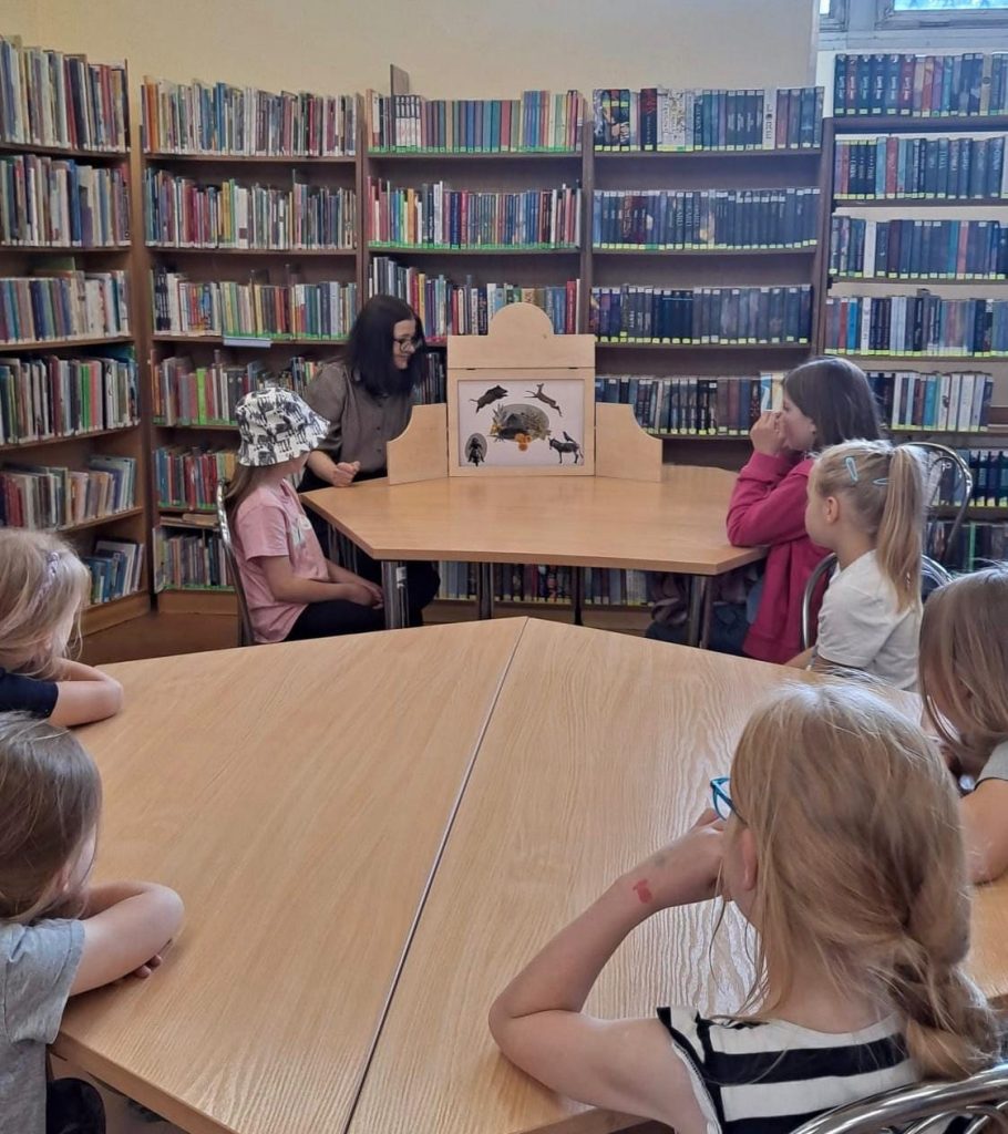 Najpierw dzieci wysłuchały opowieści o życiu Simony ilustrowanej w teatrzyku kamishibai. Następnie wzięły udział w zabawach przyrodniczych: poszukiwały roślin ukrytych za regałami z książkami i podążały za śpiewem ptaków rozbrzmiewającym z różnych zakątków biblioteki.