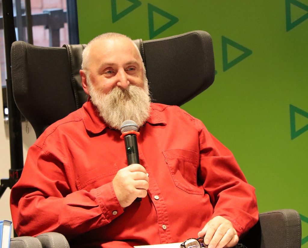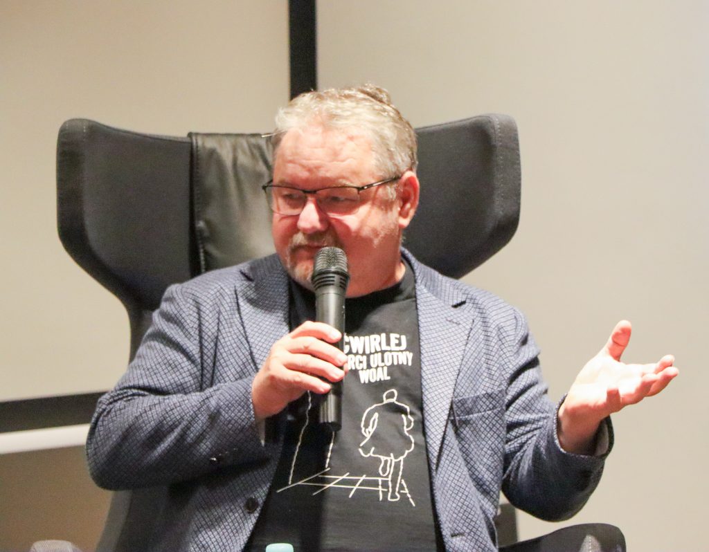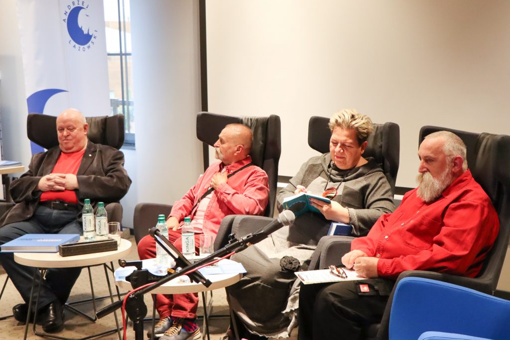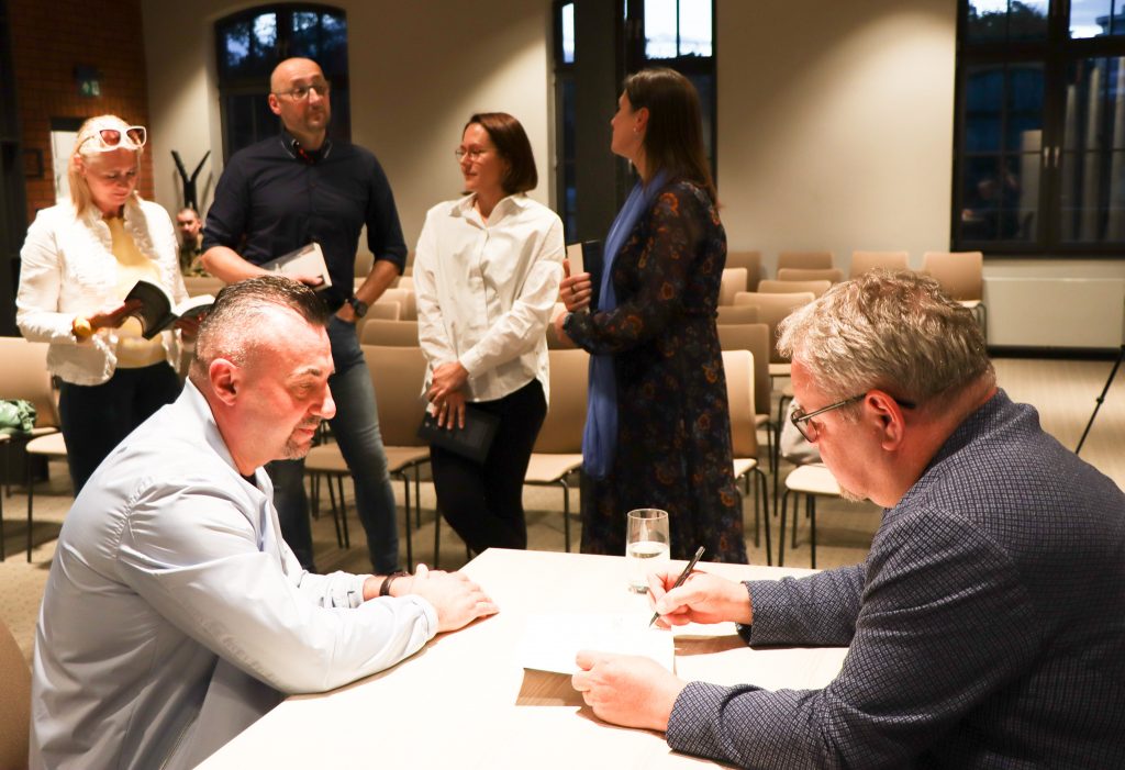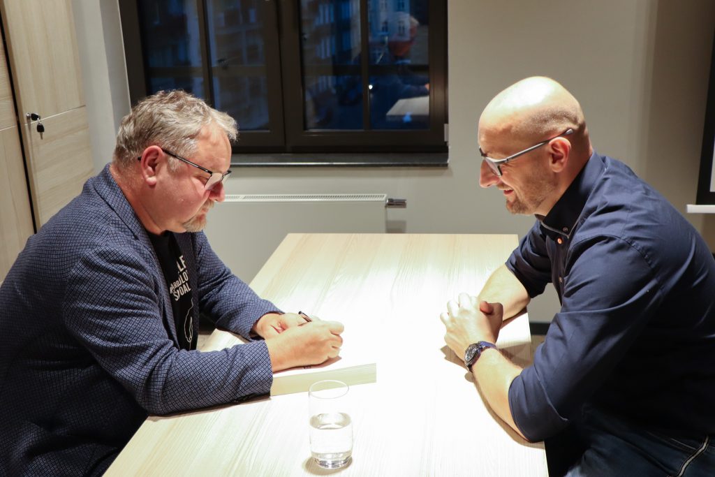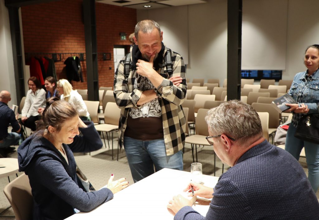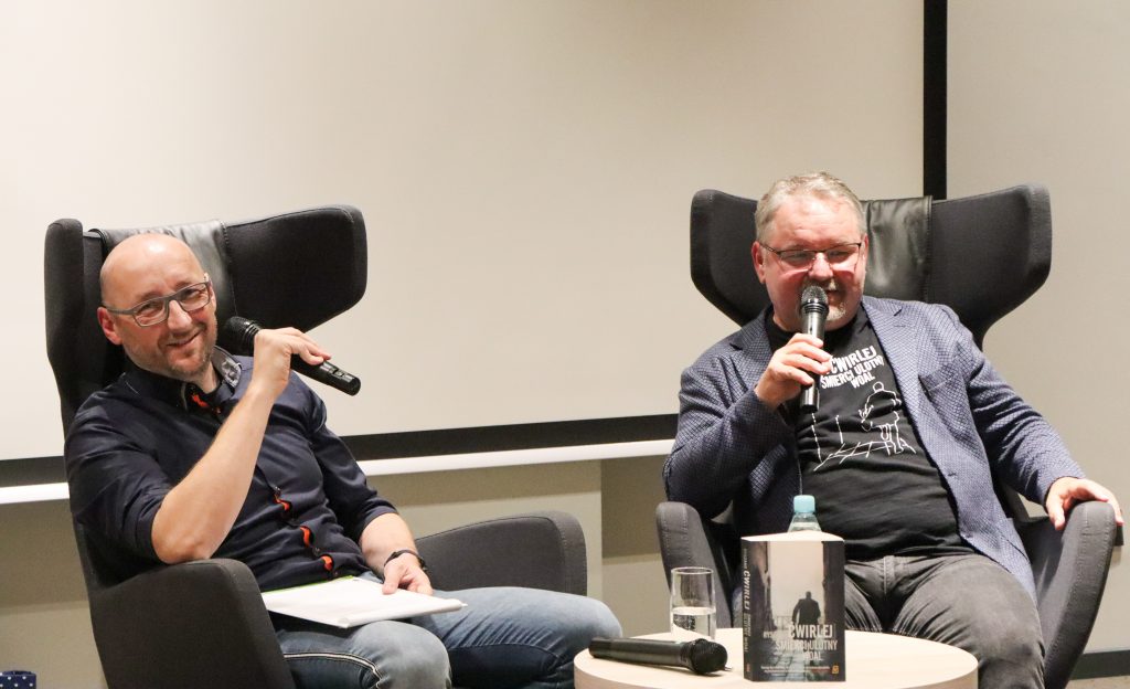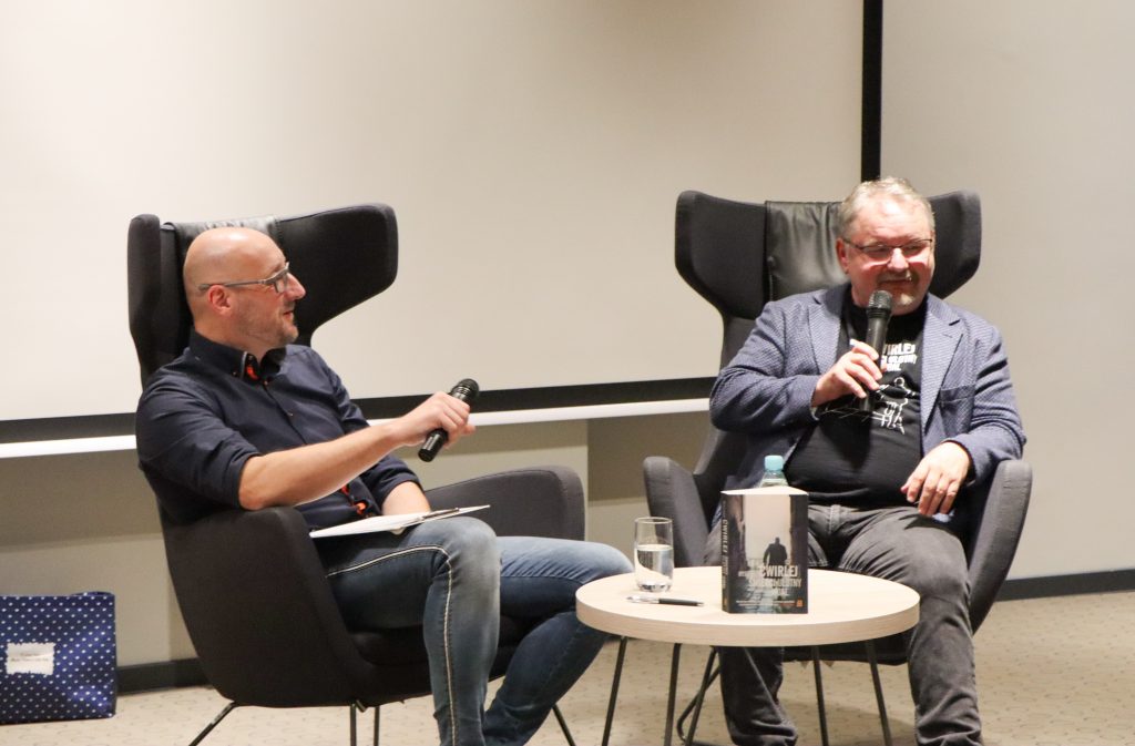 A poniżej zdjęcia z rozmowy Marka Stelara z Ryszardem Ćwirlejem, twórcą powieści kryminalnych z gatunku neo milicyjnych.