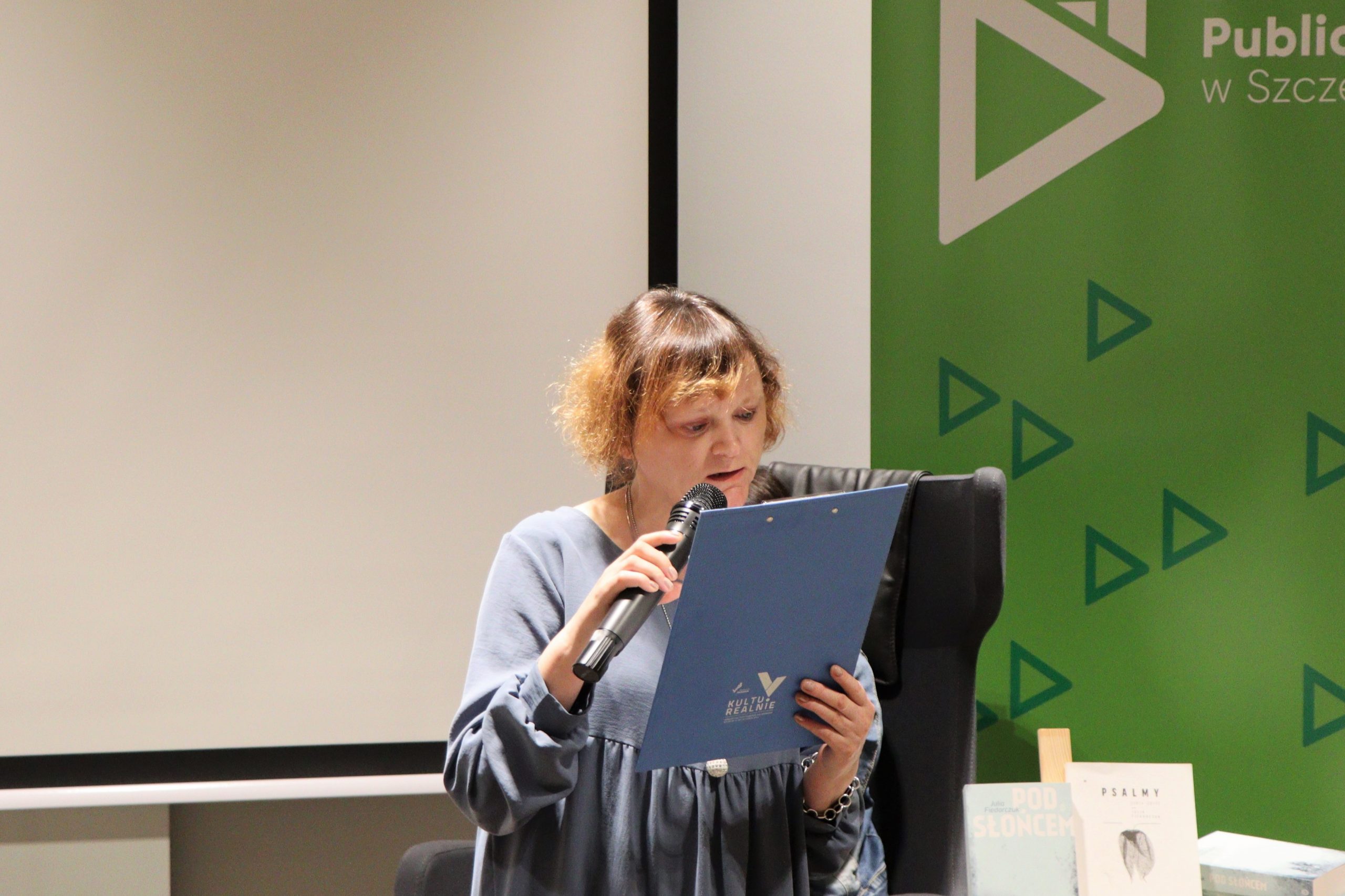 Spotkanie z Julią Fiedorczuk odbyło się 5 października w filii nr 7 (pl. Matki Teresy z Kalkuty 8). Rozmowę z poetką prowadziła Anna Godzińska, całość była symultanicznie tłumaczona na język migowy przez Ewę Spychałę. Spotkanie uświetnił występ Alicji Czarnuszki, aktorki, która odczytała fragmenty Psalmów Fiedorczuk. Wydarzenie było częścią projektu Poezja miasta, dofinansowanego przez MKDNiS.