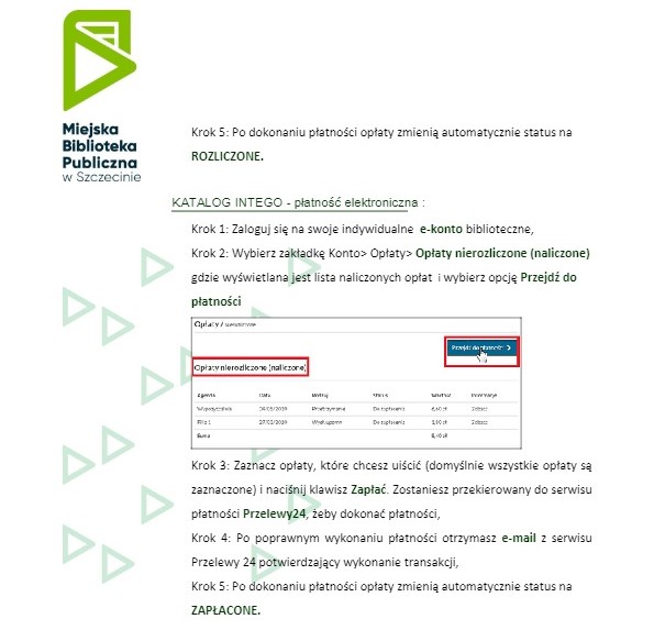 Należności finansowe wobec biblioteki Czytelnicy powinni regulować bezpośrednio w filiach bibliotecznych. Wpłaty można robić gotówką lub kartą płatniczą.