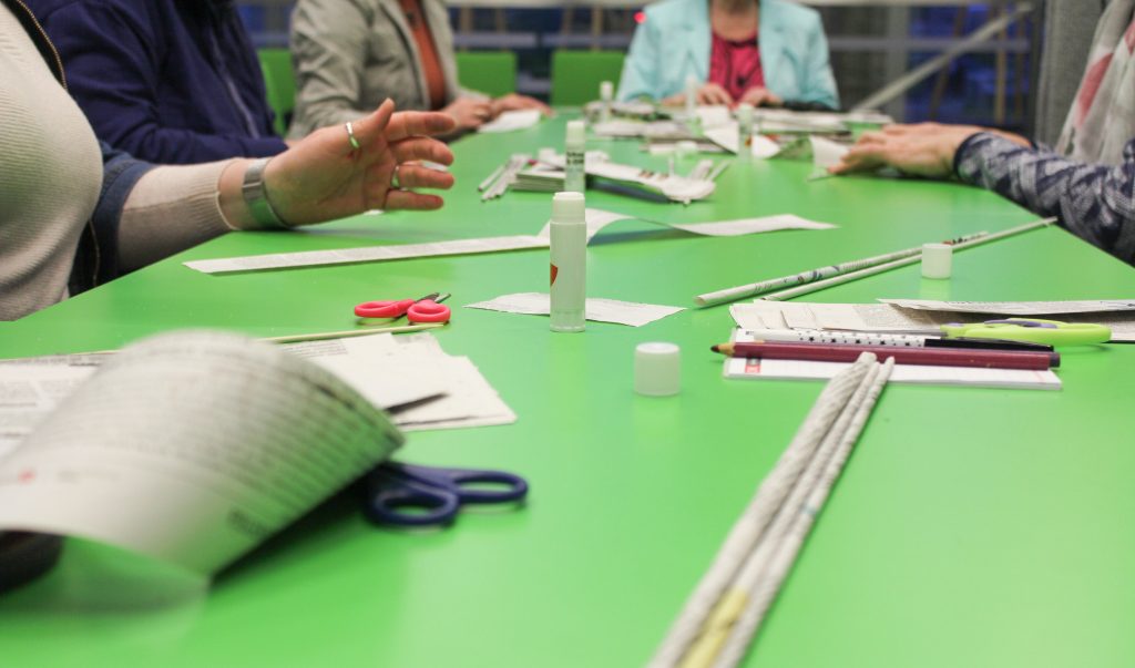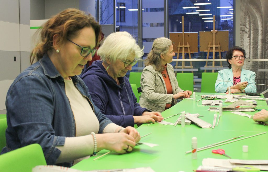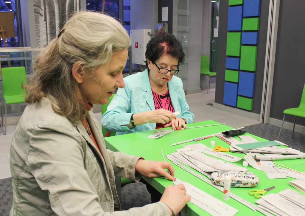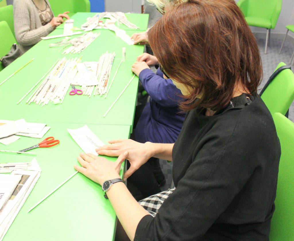 W środę (18.01) wszyscy chętni na rozwijanie swoich zdolności manualnych oraz ciekawych rozmów, mogli wziąć udział w nowym cyklu warsztatowym [Coś z niczego]. Na pierwszych zajęciach prowadząca pokazała jak tworzyć wiklinę papierową.