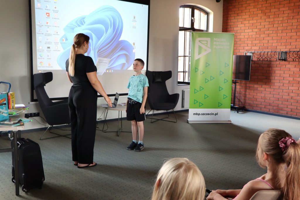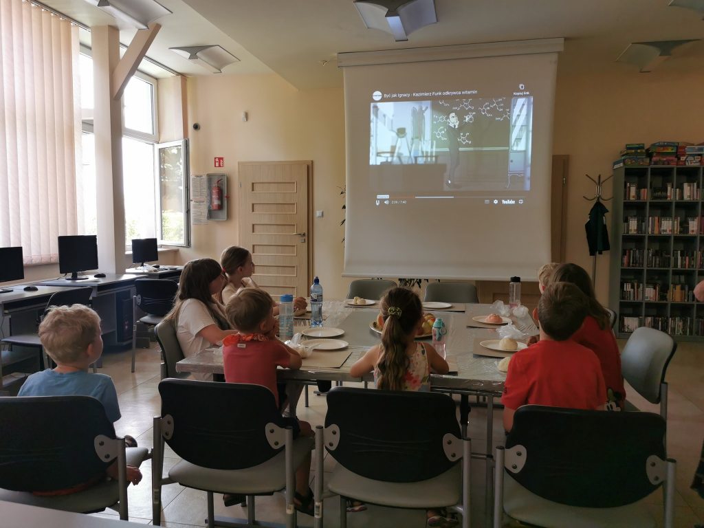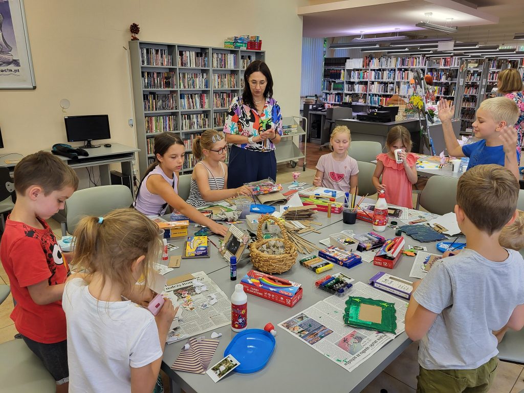 Uczestnicy wakacyjnych zajęć w filii nr 4 (ul. Barnima 25) dowiedzieli się o wielkich wyczynach Polaków, tworzyli prace plastyczne, mieli okazję również zobaczyć teatrzyk Kamishibai.