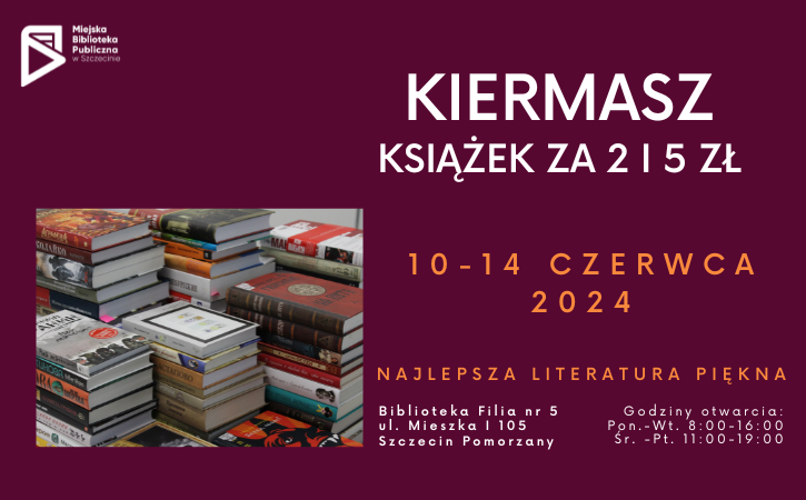 W dniach 10-14 czerwca zapraszamy do filii nr 5 (ul. Mieszka 1 105) na kiermasz taniej książki.