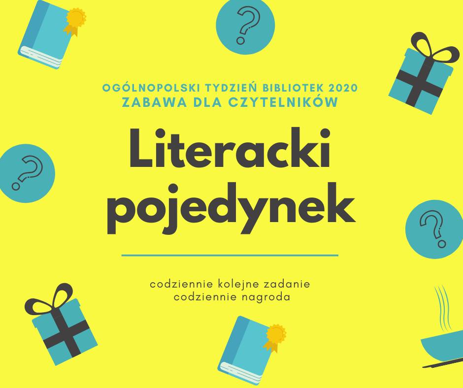 1. Wpisy będą publikowane w dni powszednie w trakcie Ogólnopolskiego Tygodnia Bibliotek 2020 do godz. 9 rano na profilu filii nr 28 @filia28MBP i oznaczone tytułem Literacki pojedynek.