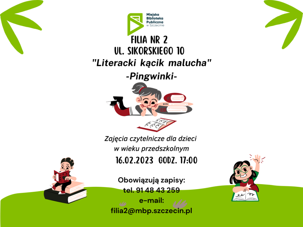 Z okazji ferii zimowych, w imieniu pani Justyny z filii nr 2 (ul. Sikorskiego 10), zapraszamy na kolejne spotkanie [Literackiego Kącika Malucha], które odbędzie się 16 lutego (czwartek) o godz. 17:00.