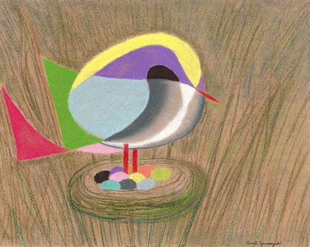 “Nazywam się Tomek Gruszczyński i pragnę przedstawić moje rysunki kredkami i suchymi pastelami zebrane pod wspólnym tytułem „Owoce zmagań twórczych” Prace, z wyjątkiem jednej, powstały na bazie szkiców intuicyjnych z zawiązanymi oczami i stanowią cykl wglądu w siebie obrazujących przemianę wewnętrzną. Metoda ta stanowi podstawę warsztatów twórczych „Samopoznanie przez rysowanie” skierowanych do osób zainteresowanych poznaniem i ekspresją samych siebie.”