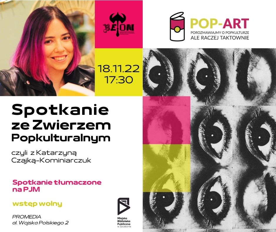 18 listopada (piątek) o godz. 17:30 zapraszamy do ProMediów (al. Wojska Polskiego 2) na spotkanie z Katarzyną Czajką-Kominiarczuk [Zwierz popkulturalny] – dziennikarką, blogerką i autorką wielu książek poświęconych kulturze popularnej.