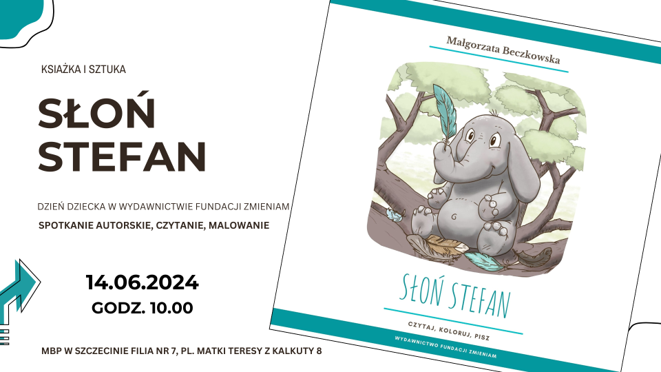 14 czerwca (pt.) o godz. 10:00 naszą filię nr 7 (pl. Matki Teresy z Kalkuty 8) specjalny gość – autorka książki „Słoń Stefan” Małgorzata Beczkowska. W ramach spotkania autorskiego będziemy wspólnie czytać fragmenty książki i rozmawiać o przygodach jej bohaterów. 📚✨