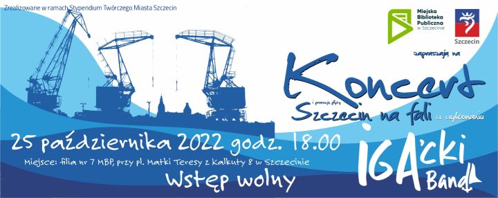 25 października (wtorek) o godz. 18:00 zapraszamy do filii nr 7 (pl. Matki Teresy z Kalkuty 8) na koncert „Szczecin na fali” w wykonaniu zespołu IGA’cki Band.