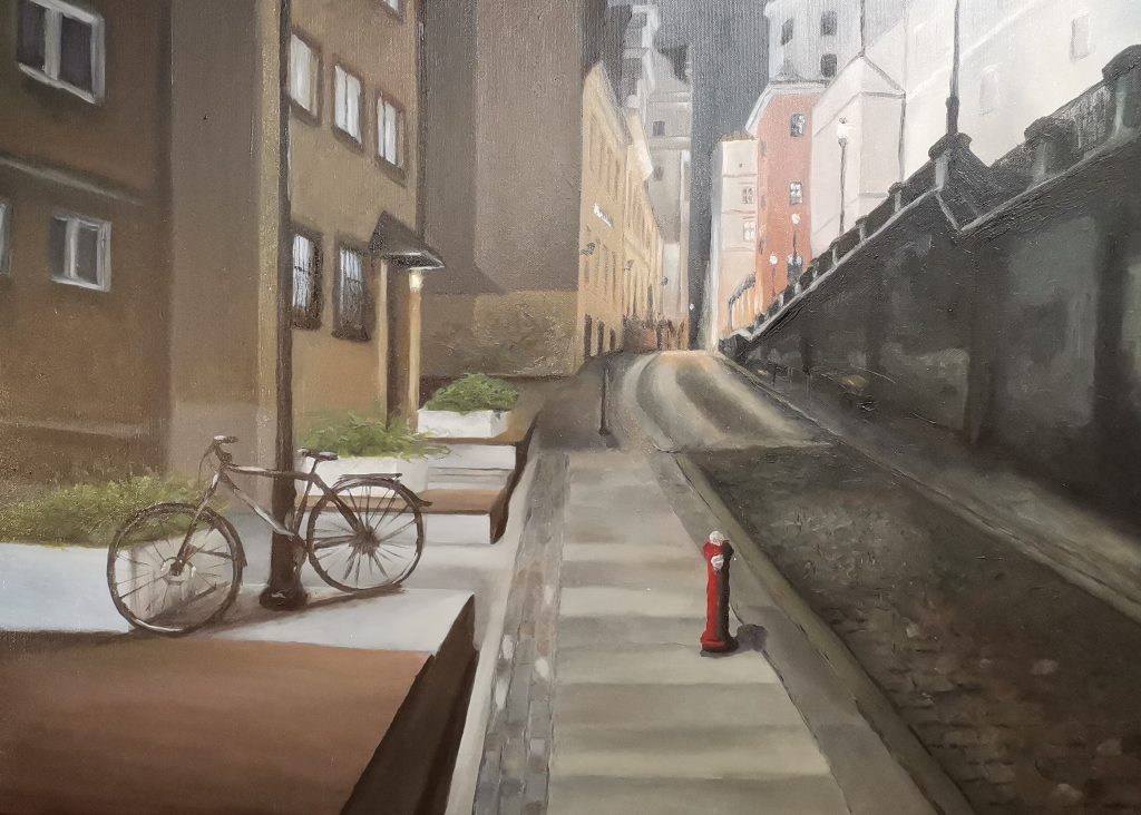 - Janina Detz “Stare kamieniczki” (akryl)