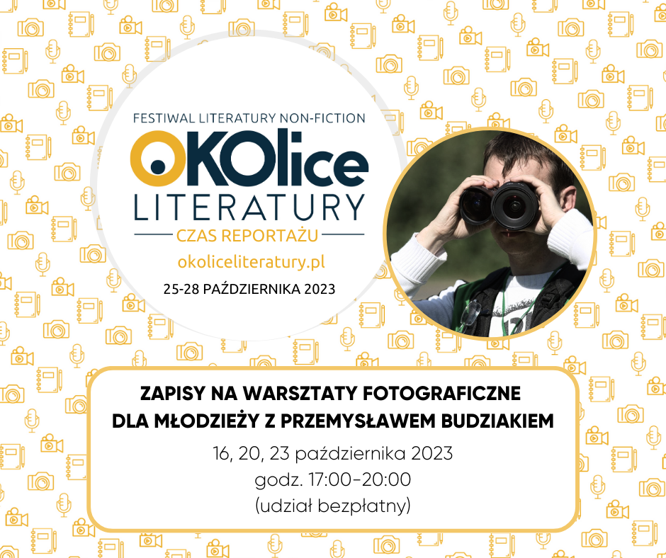 W formie zapowiedzi naszego festiwalu non-fiction OKOlice Literatury 2023 zapraszamy młodych odbiorców kultury na warsztaty fotograficzne, które odbędą się w ProMediach (al. Wojska Polskiego 2) od 16 października (pn.)