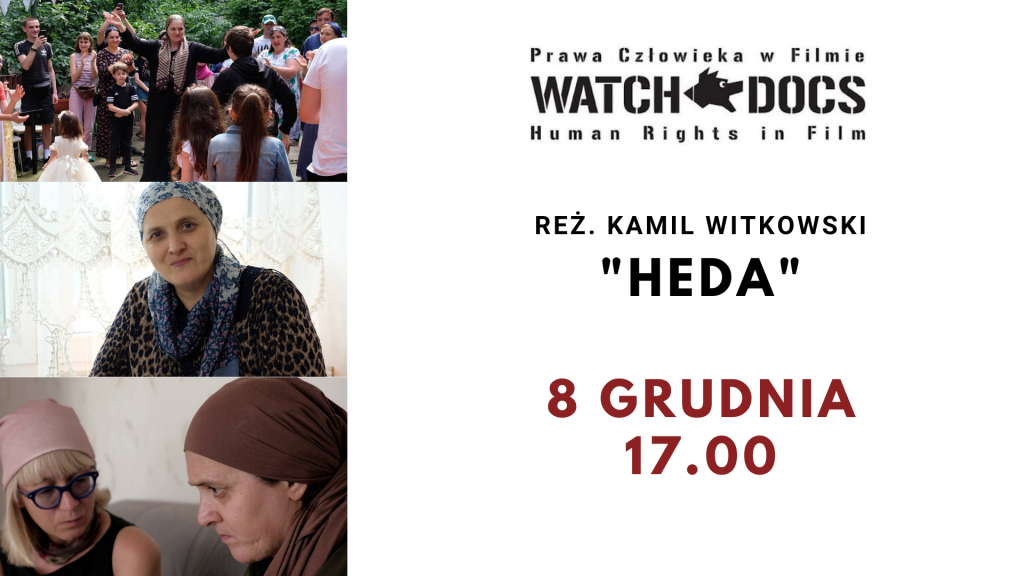 8 grudnia (środa) o godz. 17.00 w ramach projektu festiwalowego Watch Docs Zrób to sam zapraszamy na seans filmu dokumentalnego „Heda” w reż. Kamila Witkowskiego (2020). Spotkanie odbędzie się w filii nr 54 „ProMedia” (Al. Wojska Polskiego 2) – obowiązują bezpłatne wejściówki do zdobycia osobiście lub pod numerem telefonu: 91 506 50 56.