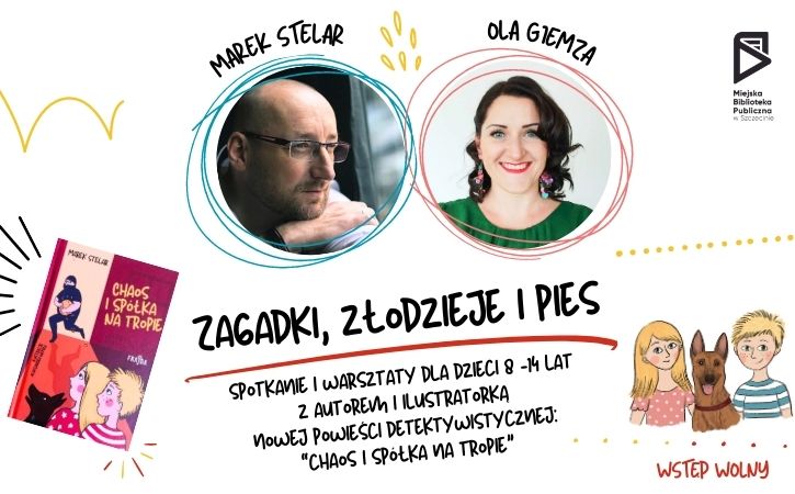 19 września (wt.) o godz. 18:00 w filii nr 7 (pl. Matki Teresy z Kalkuty 8) autor powieści kryminalnych (głównie dla dorosłych, ale także dla młodszych) Marek Stelar oraz ilustratorka Ola Giemza, opowiedzą dzieciom i ich rodzicom o nowej książce pełnej atrakcji „Chaos i spółka na tropie.