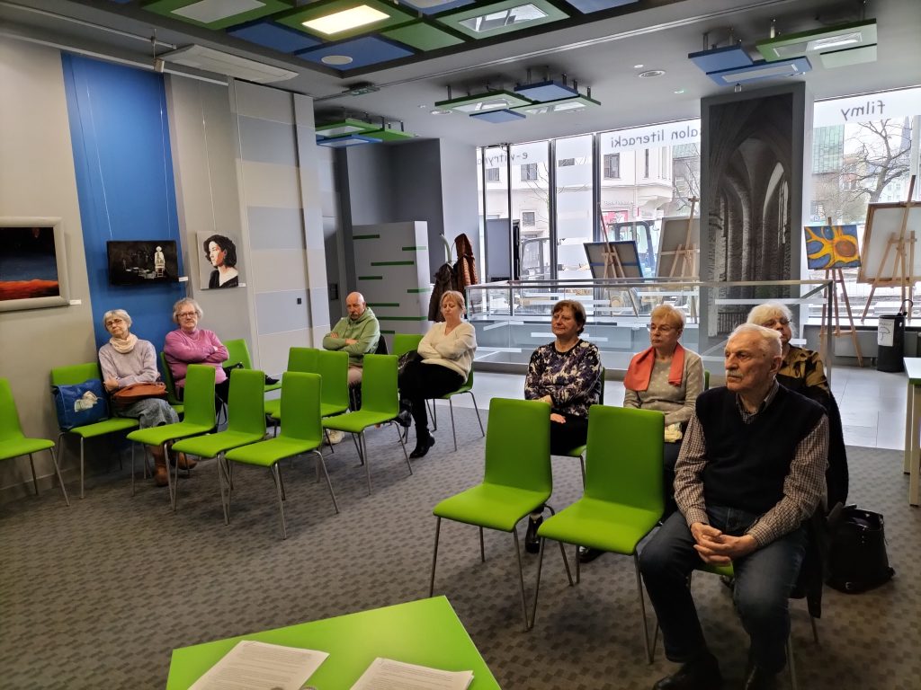 Gościliśmy członkinie i członków szczecińskiego oddziału Polskiego Związku Niewidomych. Rozmawialiśmy przede wszystkim o tym, jakie udogodnienia dla osób z dysfunkcją wzroku znajdują się w naszej filii.