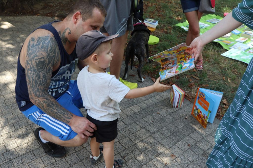 Upał nam nie przeszkadzał, bo drzewa dawały upragniony cień, leżaki kusiły, aby na nich odpocząć 😊 a my częstowaliśmy przechodniów książkami. Wystarczyło się do nas uśmiechnąć.